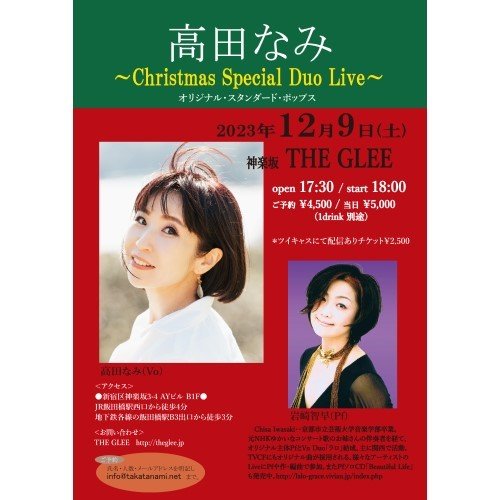 | 相关网站 | http://theglee.jp/schedule/%e9%ab%98%e7%94%b0%e3%81%aa%e3%81%bf%ef%bd%9echristmas-special-duo-live%ef%bd%9e/ |