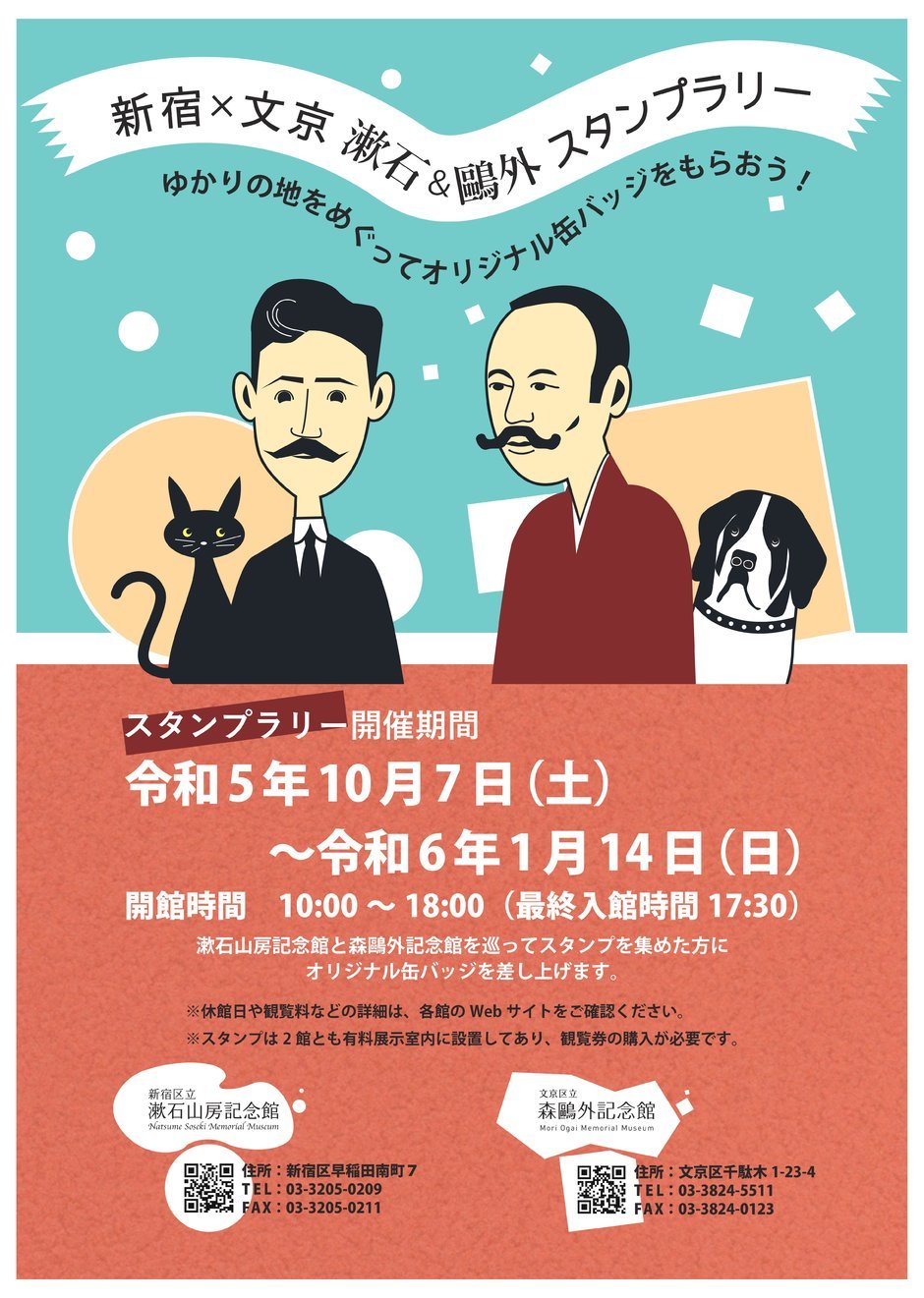| 地点 | 新宿区立漱石山房記念館(新宿区早稲田南町7) 文京区立森鷗外記念館(文京区千駄木1-23-4) |