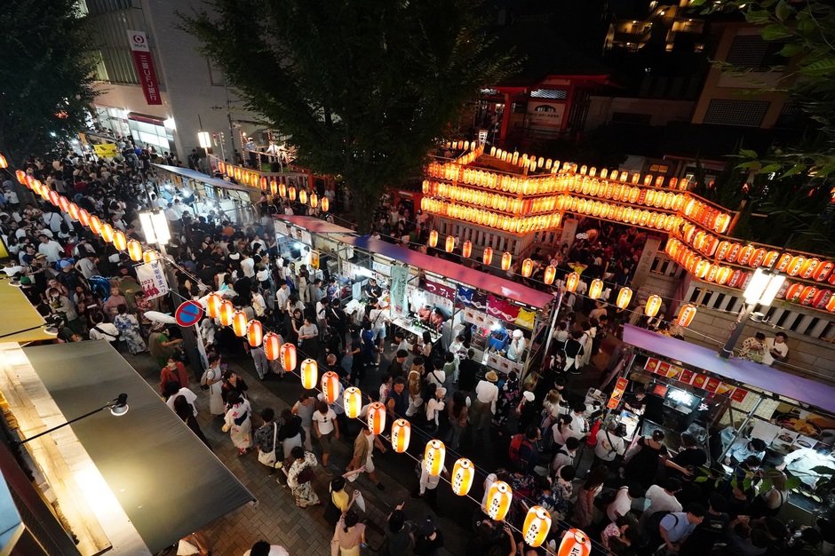 4日間のうち、前半の2日がほおずき市、後半の2日は阿波踊り大会。全国から連があつまって阿波踊りを披露します。近隣飲食店や専門店による門前屋台コーナーでは、神楽坂で評判のお店の味を気軽に楽しめます。