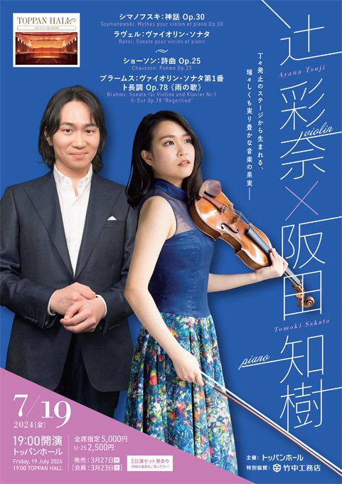 辻 彩奈(ヴァイオリン)&阪田知樹(ピアノ)【完売】