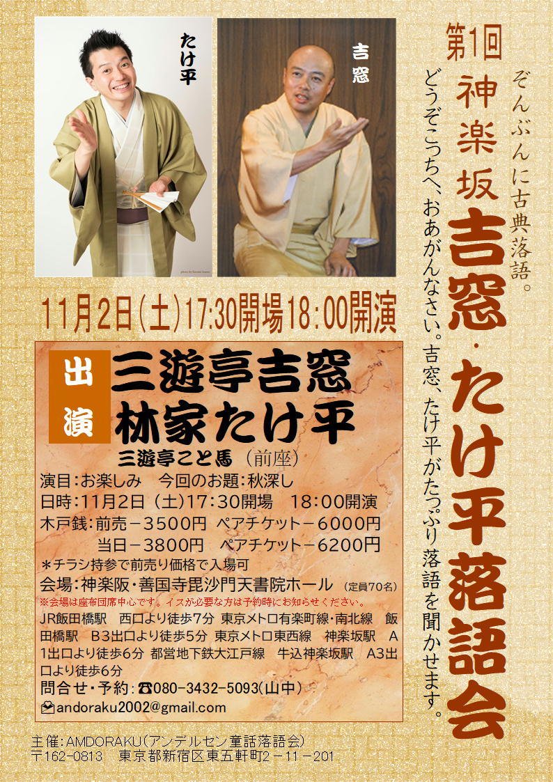 出演:三遊亭吉窓、林家たけ平、三遊亭こと馬(前座)