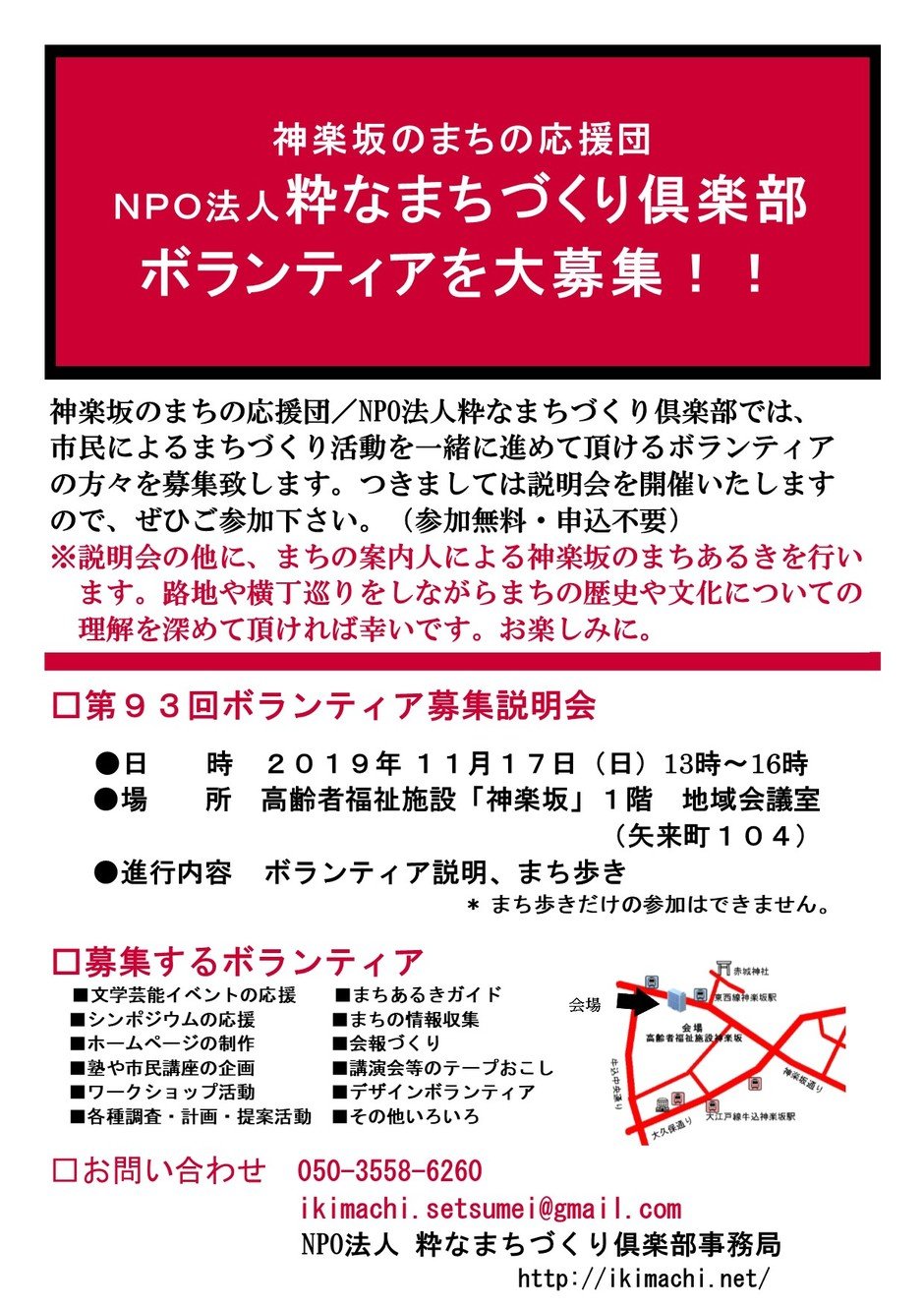 | 地点 | 高齢者福祉施設「神楽坂」1階 地域会議室(矢来町104) |