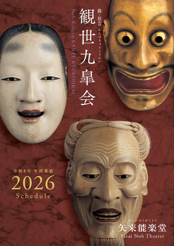 「九皐会」の名は、明治期に初世観世喜之(1885│1940)のもとに集っていた文人の一人である清浦圭吾(のちの二十三代内閣総理大臣)が『詩経』にある「鶴九皐に鳴き声天に聞こゆ」より命名しました。現当主は四代目の三世観世喜之(1935│)。嫡男の観世喜(1970│)を始め約40名のプロの能楽師が所属しています。昭和27年に文部省(当時)より社団法人の認可を受け、平成24年に内閣府所管の公益社団法人へ移行認可を受けました。