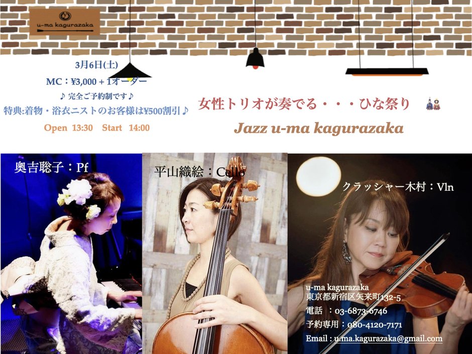 | 联系我们 | Mail Address: u.ma.kagurazaka@gmail.com Phone: 03-6873-6746 Mobile: 080-4120-7171 |