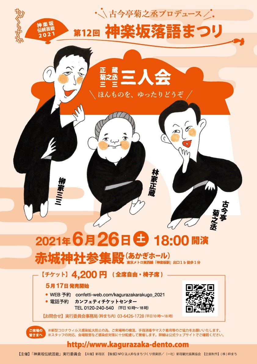 | 地点 | 赤城神社参集殿(あかぎホール) (新宿区赤城元町1-10) 東京メトロ東西線「神楽坂駅」出口1b 徒歩1分 都営大江戸線「牛込神楽坂駅」出口A3 徒歩8分 |