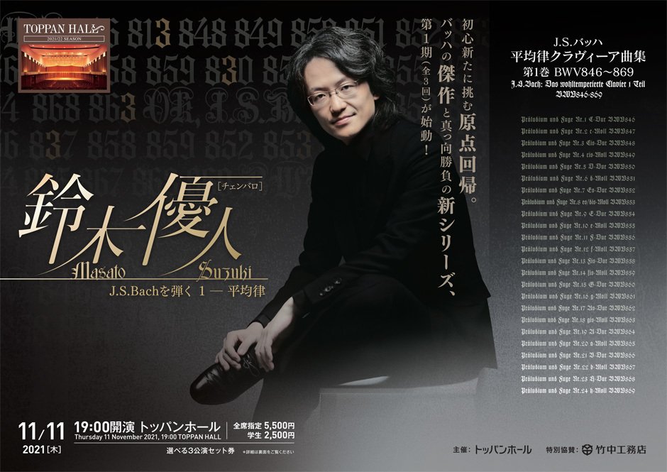 【完売】鈴木優人(チェンバロ)J.S.Bachを弾く 1 ―平均律