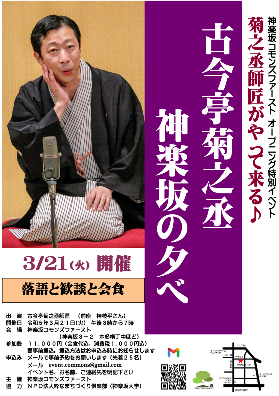 | 地点 | 会場 : 神楽坂コモンズ 1st(神楽坂3−2 本多横丁中ほど) |