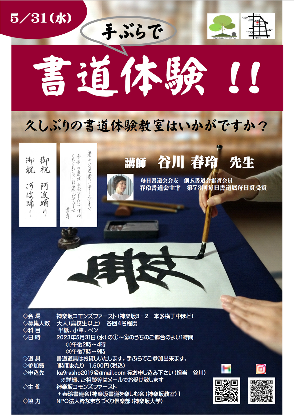 ●主 催 :神楽坂コモンズ1st+春玲書道会【神楽坂書道を楽しむ会(神楽坂教室)】