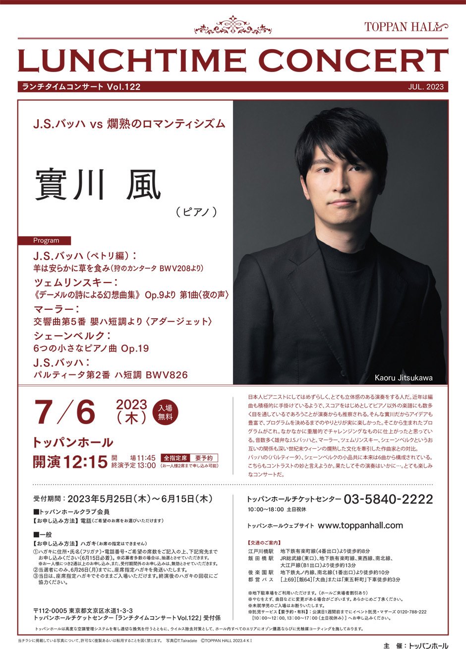 | 联系我们 | トッパンホールチケットセンター 03-5840-2222(平日10:00~18:00) |