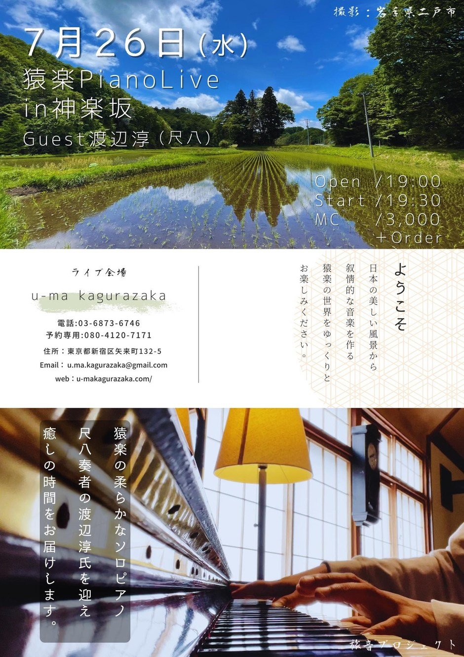 | 联系我们 | Email: u.ma.kagurazaka@gmail.com Phone: 03-6873-6746 予約専用: 080-4120-7171 |