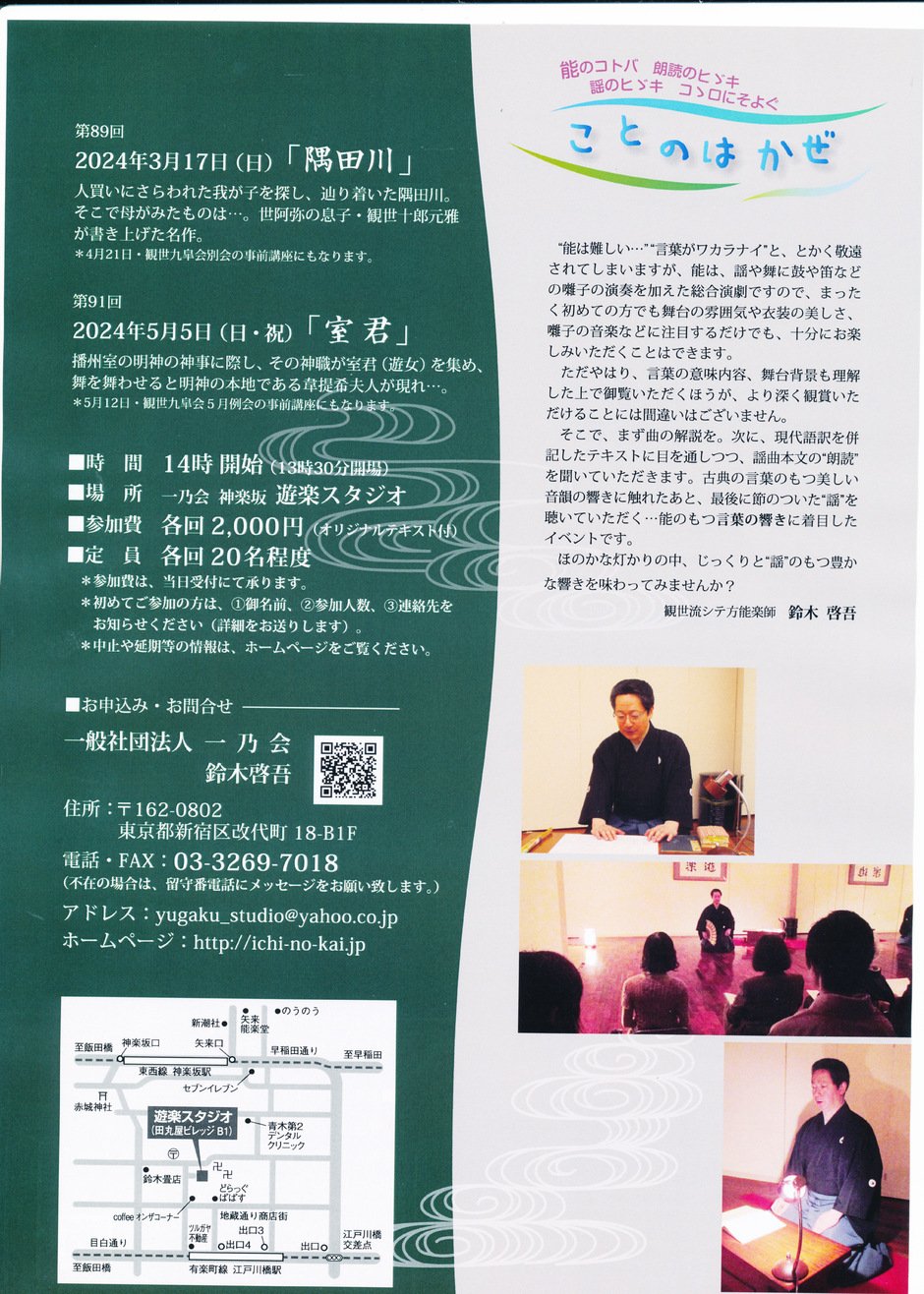 4月21日開催の観世九皐会主催公演の事前講座にも最適。