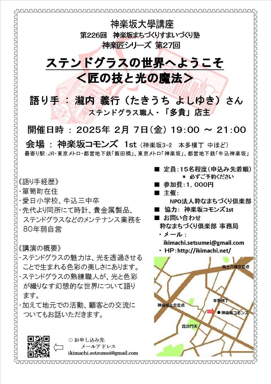 | 地点 | 会場 : 神楽坂コモンズ 1st (神楽坂3-2 本多横丁 中ほど) |