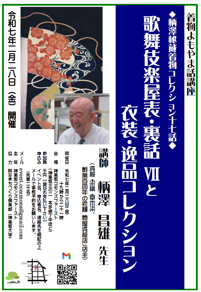 【お知らせ】神楽坂コモンズファースト講座 着物・染め物よもやま話「柄澤昌雄コレクション第17話」~歌舞伎楽屋表・裏話Ⅶと、衣装・逸品コレクション~(