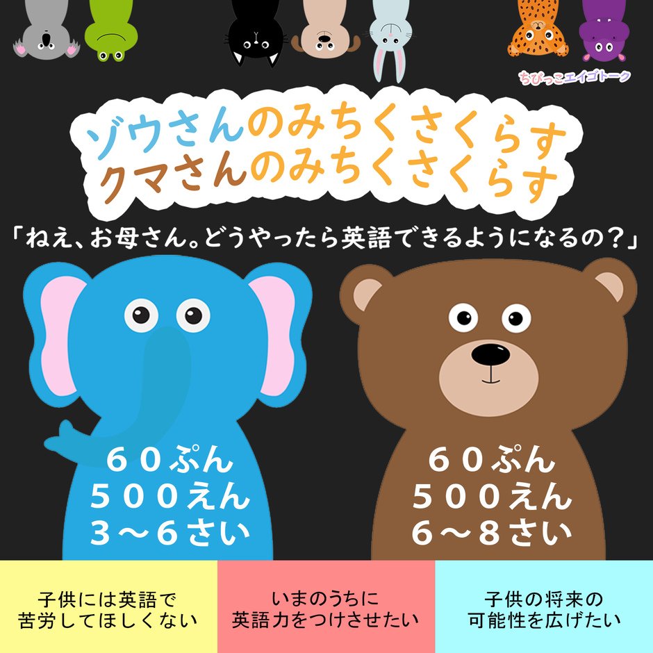子育てに英語を取り入れましょう! と言われても忙しいお母さんには、とても簡単なことではありません。まずは、ちびっこエイゴトークに参加して、子供と英語で会話する方法を覚えて、少しずつご家庭に取り入れてみましょう。日本生まれ日本育ち日本語を話す普通のお母さんに向けた子供英会話です。