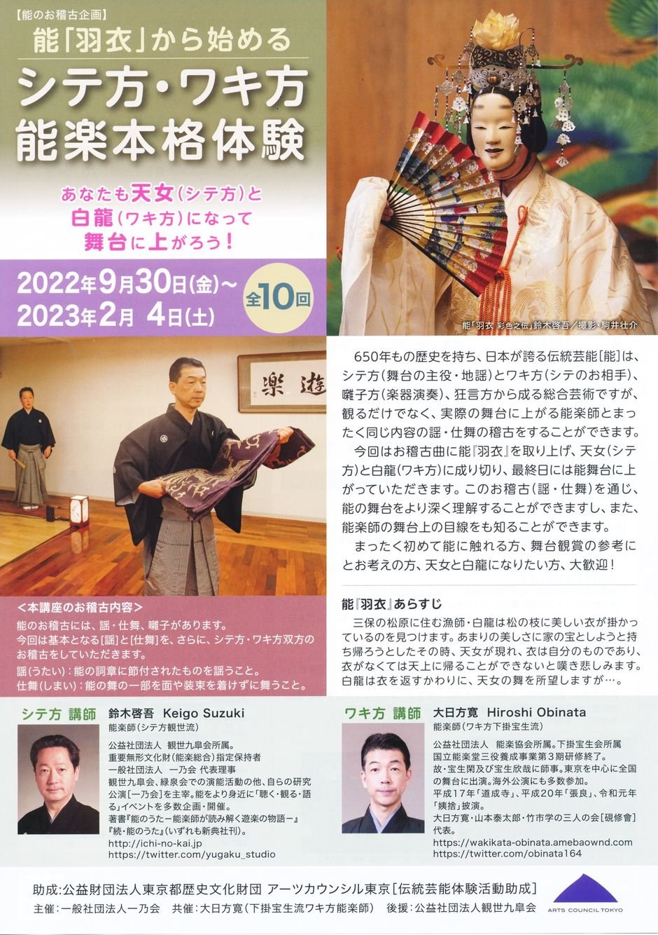 10月14日(金)19時~21時 謡(ワキ方)/仕舞(シテ方)