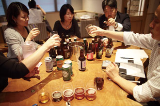 試飲会には、ご存じ神楽坂ビールを7年前に立ち上げた伊東宏祐さんも参加。北のビールと一緒に試飲しました。神楽坂ビールは、いわばご当地ビールで、中味は東北福島のビールメーカーが製造していて、そのキレとコクの良さには、皆うなづいていました。