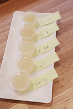 店内で試食(試飲?)ができる時は、(神楽坂プリュスのワークショップならできます)次の3つのポイントでチェックを。色と香りと味。色は、透明なガラス瓶に入れて光をかざした時、きれいな赤色をするものがよいとされています(溜醤油は別)。香りは、食欲をそそるこうばしいものがよく、花や果物など様々な香り約300種類以上といわれています。そして味は、うま味、甘味、酸味、塩味、苦味が一体になっているので、自分の好みを見つけることが大切。素材によって、生で、熱を加えて、それぞれデリケートに反応します。だまされたと思って、バニラアイスに香川県の鶴醤(つるびしお)をかけていただいたら、結構なお味でした。迷いながら、選ぶたのしみをぜひお試しあれ。
