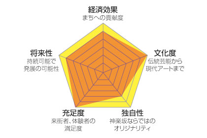江戸時代からの地割りのままに細い路地や横丁が残り、花柳界の見番や伝統芸能のお師匠さんの稽古場も数多くある神楽坂。こうした雰囲気や風情の中で、新内節や城端曳山祭「庵唄」が路地を演奏しながら流し歩き、毘沙門天善國寺には、仮設の舞台が設けられ、芸能ライブが繰り広げられる。前夜祭と本祭があり、長唄、三味線、尺八、笛、箏、など様々な伝統芸能の魅力に触れられる。2020年の東京オリンピックを視野に入れ、今後江戸東京の文化に期待する幅広い層に支持されはじめている。