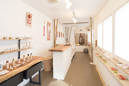 店内のお香はすべてJuttoku.オリジナルの商品。淡路島の職人さんによって、昔ながらの手間暇をかけた方法で作られている。古くは平安時代から慕われてきたお香には、リラックス効果や精神集中の効果が期待できるので、女性はもちろん、最近では男性のお客さんも増えてきているという。店内にはお香づくりの体験コーナーもあり、お香が何から、どうやってできているのかを紹介。心を落ち着かせてくれる時間を過ごせる。お香が初めてという方にも、ひとつひとつ丁寧に教えてくれるので、ぜひ気軽に足を運んでみてほしい。