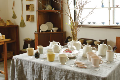 暮らしで使う器を中心に、日用雑貨なども扱うお店。店主のはるやまさんが日本各地で出会った、綺麗で作家ものでありながら、手の届きやすい工芸品が並ぶ。もっともすべてが作家ものではなく、窯元や工房の品も扱われている。「個人作家と同じように、窯元も私たちの暮らしを支えています。それはそのままお客さんに見せたいんです」とはるやまさん。手仕事や工芸に興味を持ち始めたのなら、暮らしをもう少し充実させたいのなら、神楽坂 暮らす。へ。 器に加え、見て心が和むような小物も扱いつつあるとのこと。