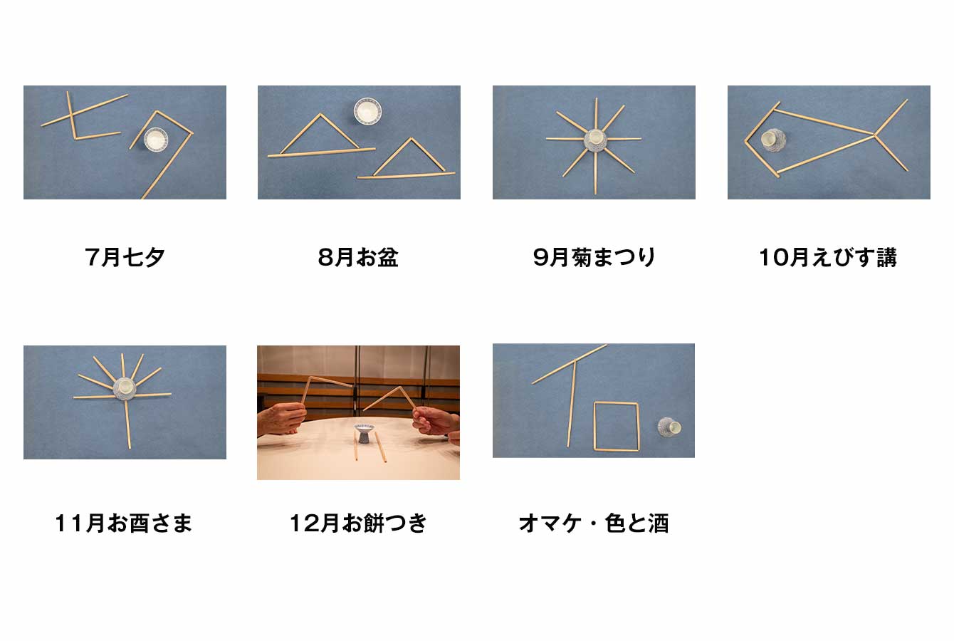 第1回 韋駄天のおゆみさん スポーツが得意で、小中学校は日焼けして真っ黒だったという斉藤れい子さん。小学生の時には、ずっとリレーの選手で、新宿区の連合運動会ではリレーでアンカーを任されて、見事優勝したという。中学生の時は、陸上競技も水泳も得意で、いつも入賞。そんな活発な女の子が、中学を卒業後、お酌でお披露目した。「水陸両用のれい子ちゃん」は「由みゑさん」に生まれ変わりました。前の東京オリンピックが開催される3年前のこと。あれから半世紀ちょっと。世の中の景気も右肩上がりで、国も東京も浮かれていたころ。神楽坂の花柳界はどこか、のどかで家庭的な雰囲気が漂っていました……。 お座敷遊びでは、割りばし2組とおちょこ1個だけで日本の12カ月の催事を表す数え歌を披露。実によくできた数え歌で、12カ月のカタチを写真でも紹介します。数え歌の語尾が「〽○○でごんす」というのは、どこの地方の言葉なのか、不思議でやさしい余韻がのこる数え歌でした。 最後をしめたのは、名人芸といわれるマッチカスタネット。これを聞かずに、神楽坂のお座敷を語ることなかれ、とはちょっと言いすぎですか? |
